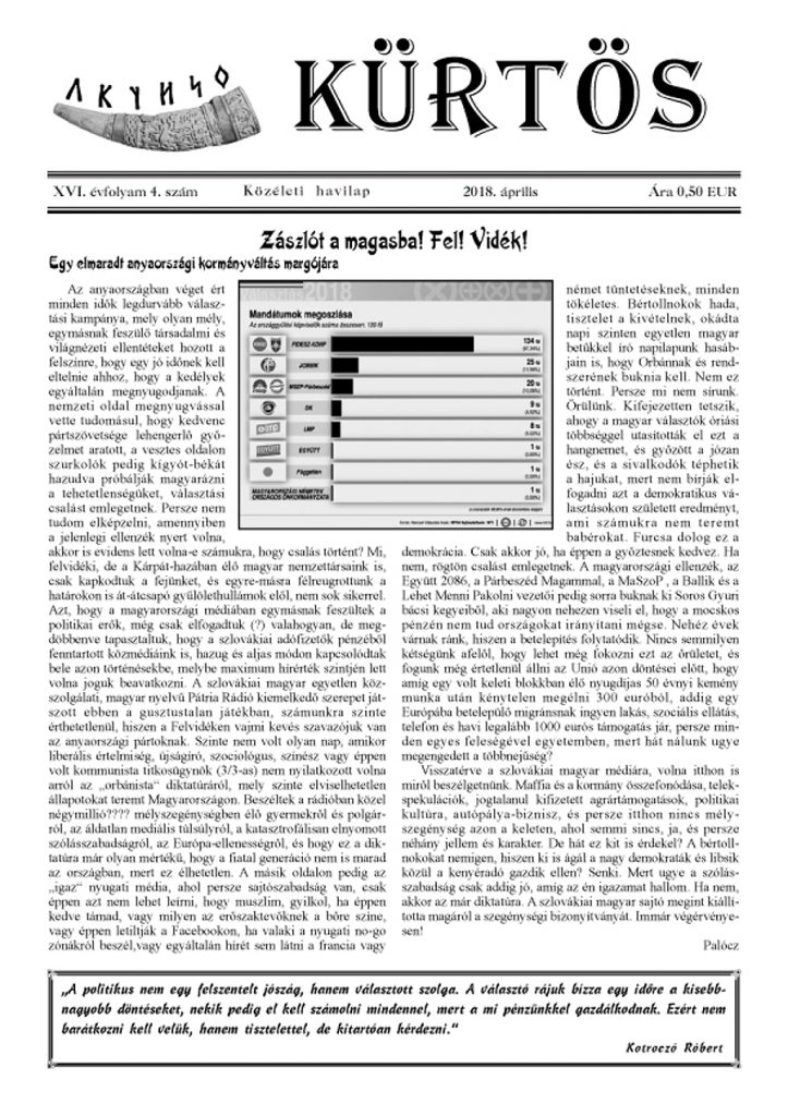 Közéleti havilap. Kiadja a Csemadok Nagykürtösi Területi Választmánya. A kiadásért felel Balogh Gábor, a CSNTV elnöke, telefon: 0907/84 22 67. Főszerkesztő Bodzsár Gyula, telefon: 0905/71 77 76. Szerkesztők: Hrubík Béla, Balogh Gábor. Műszaki szerkesztő: Kliment Éva. Korrektúra: Németh Ágota. Levélcím: 991 28 Vinica, Nekyjská 397/27. E-mail: [email protected]: 0907/85 62 96. Nyilvántartási szám: EV 1419/08. ISSN 1336-3972. IČO 00 419 621. Nyomda: Csemadok OV Veľký Krtíš. Terjeszti: a Csemadok Nagykürtösi Területi Választmánya. Ára 0,50 EUR. Megjelenik 800 példányszámban. A szerkesztőség álláspontja nem minden esetben azonos az újságban közöltekkel. A kéziratok szerkesztésének, esetleges rövidítésének jogát fenntartjuk. A hirdetések tartalmáért és nyelvhelyességéért felelősséget nem vállalunk.