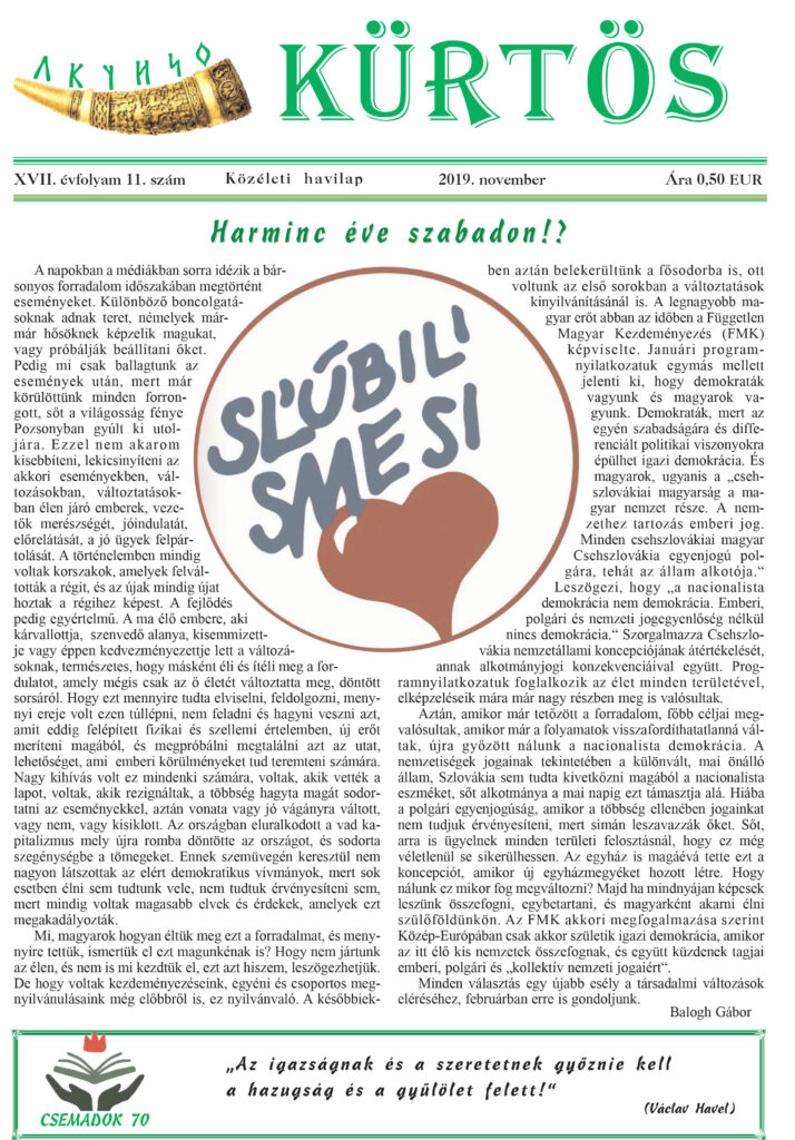 XVII. évfolyam 11. szám Közéleti havi lap 2019. november