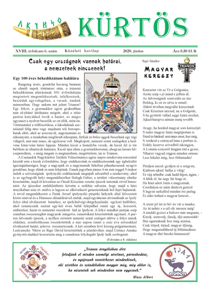 Közéleti havilap. Kiadja a Csemadok Nagykürtösi Területi Választmánya. A kiadásért felel Balogh Gábor, a CSNTV elnöke, telefon: 0907/84 22 67. Főszerkesztő Bodzsár Gyula, telefon: 0918/19 63 37. Szerkesztők: Hrubík Béla, Balogh Gábor. Műszaki szerkesztő: Kliment Éva. Korrektúra: Németh Ágota. Levélcím: 991 28 Vinica, Nekyjská 397/27. E-mail: [email protected]: 0907/85 62 96. Nyilvántartási szám: EV 1419/08. ISSN 1336-3972. IČO 00 419 621. Nyomda: Csemadok OV Veľký Krtíš. Terjeszti: a Csemadok Nagykürtösi Területi Választmánya. Ára 0,50 EUR. Megjelenik 800 példányszámban. A szerkesztőség álláspontja nem minden esetben azonos az újságban közöltekkel. A kéziratok szerkesztésének, esetleges rövidítésének jogát fenntartjuk. A hirdetések tartalmáért és nyelvhelyességéért felelősséget nem vállalunk.