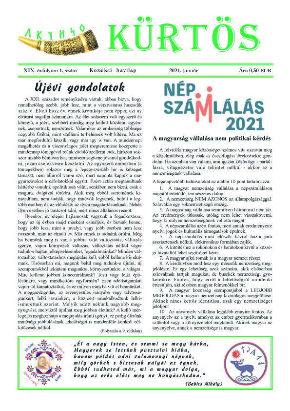 XIX. évfolyam 1. szám Közéleti havi lap 2021. január