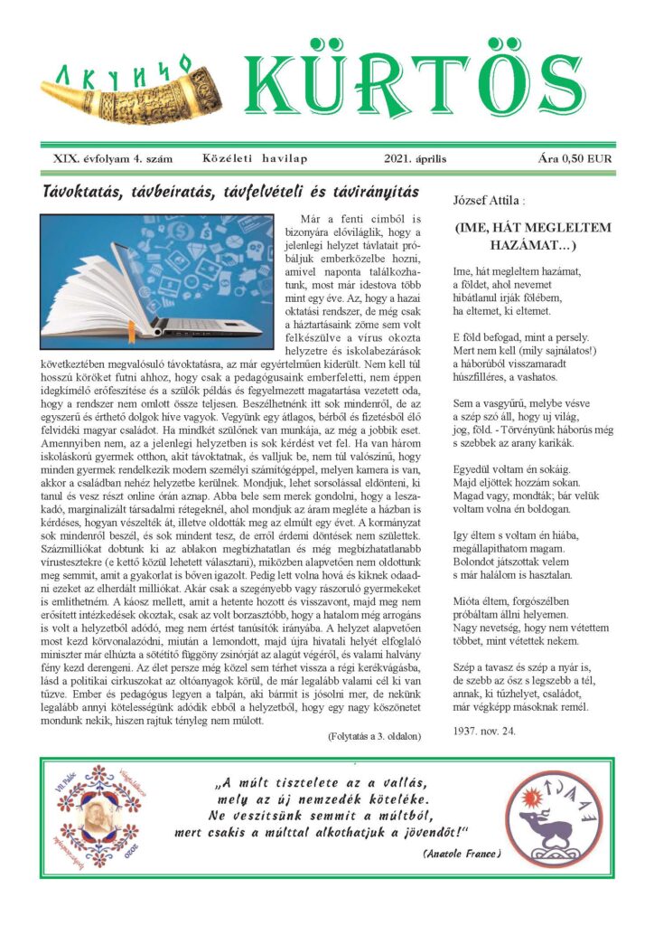 XIX. évfolyam 4. szám Közéleti havi lap 2021. április