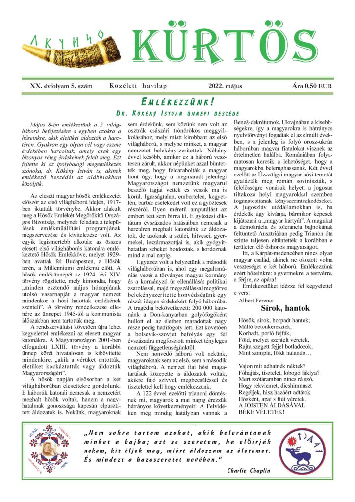 XX. évfolyam 5. szám Közéleti havi lap 2022. május
