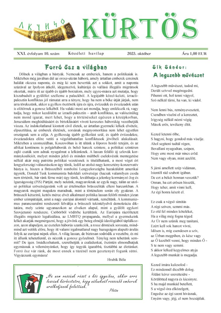 XXI. évfolyam 10. szám Közéleti havi lap 2023. október