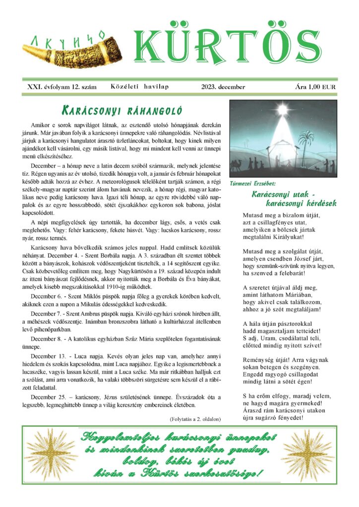 XXI. évfolyam 12. szám Közéleti havi lap 2023. december