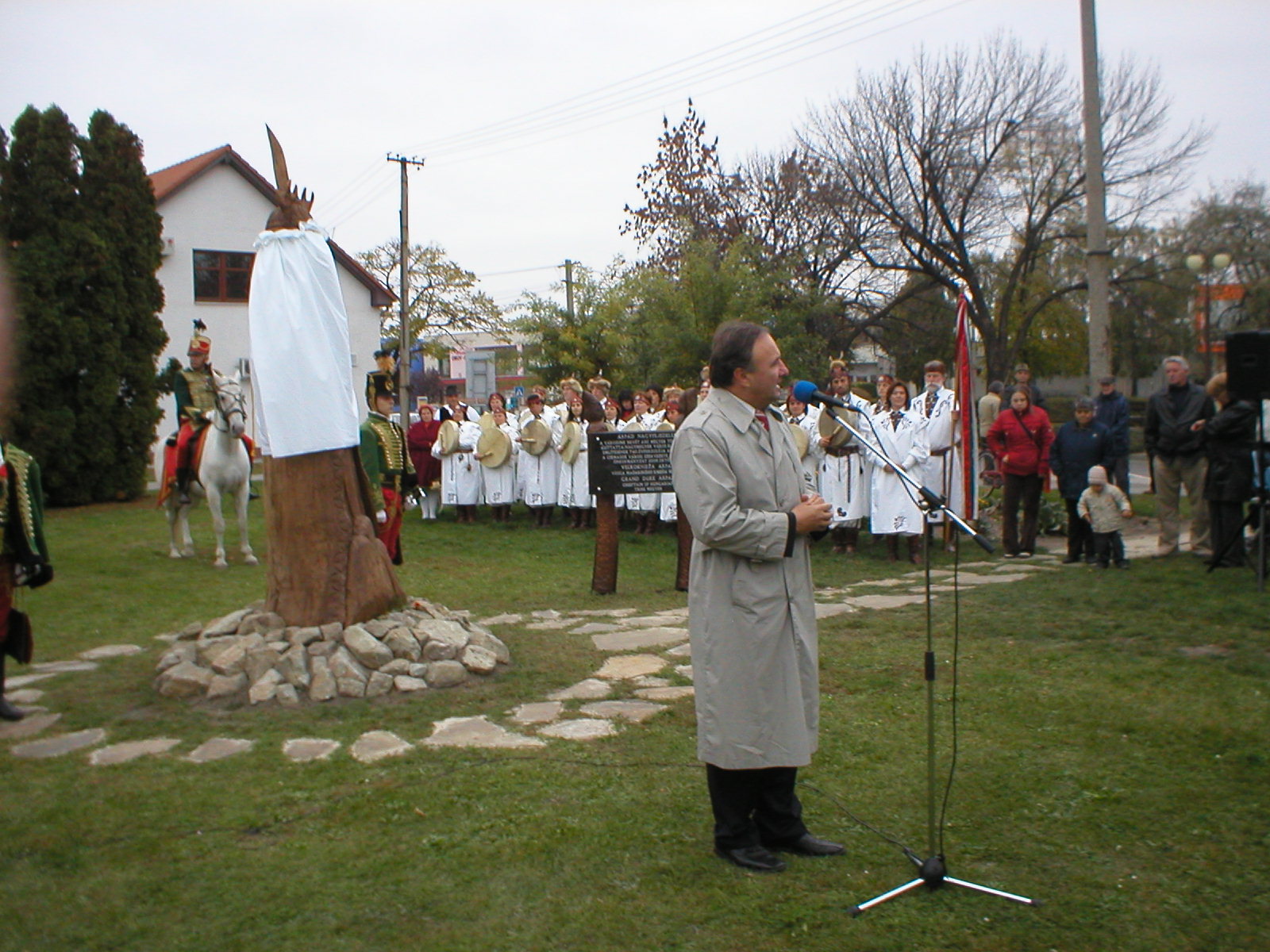 A fából készült alkotást Nagy Géza és Farkas Attila szobrászművészek készítették.Létrehozó: Csemadok Művelődési Intézete