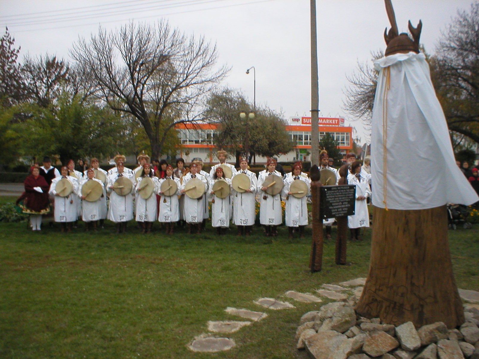 A magyarországi Regélő Fehér Táltos Dobcsapat.Létrehozó: Csemadok Művelődési Intézete