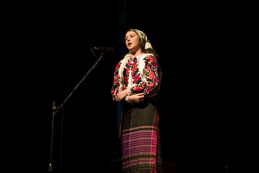 Istók Mónika csángó népdalokat énekel.Létrehozó: Csemadok Művelődési Intézete