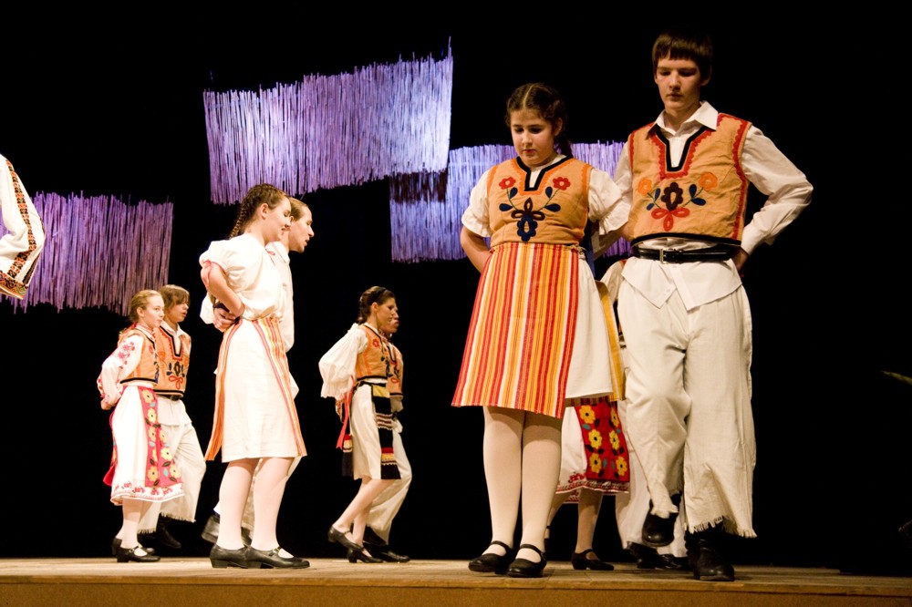 Mezőföldi táncok, Kikerics Gyermek Néptáncegyüttes, Nyékvárkony, vezető: Brandl FerencLétrehozó: Csemadok Művelődési Intézete