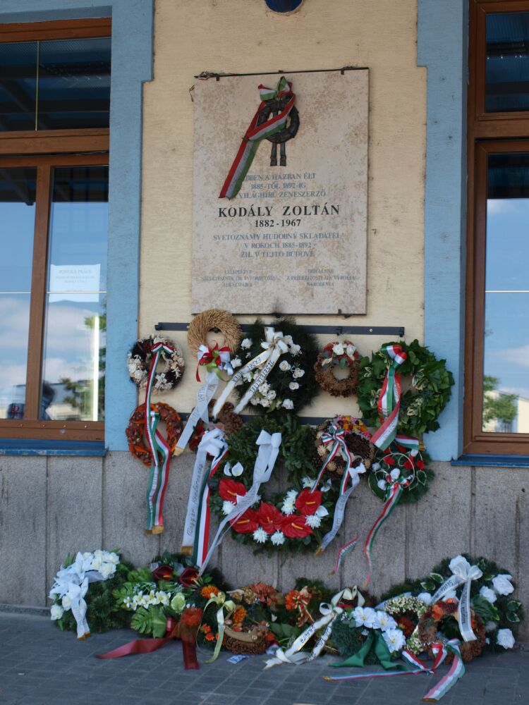 A hála és a köszönet virágai a galántai vasútállomáson elhelyezett Kodály Zoltán emléktáblánál