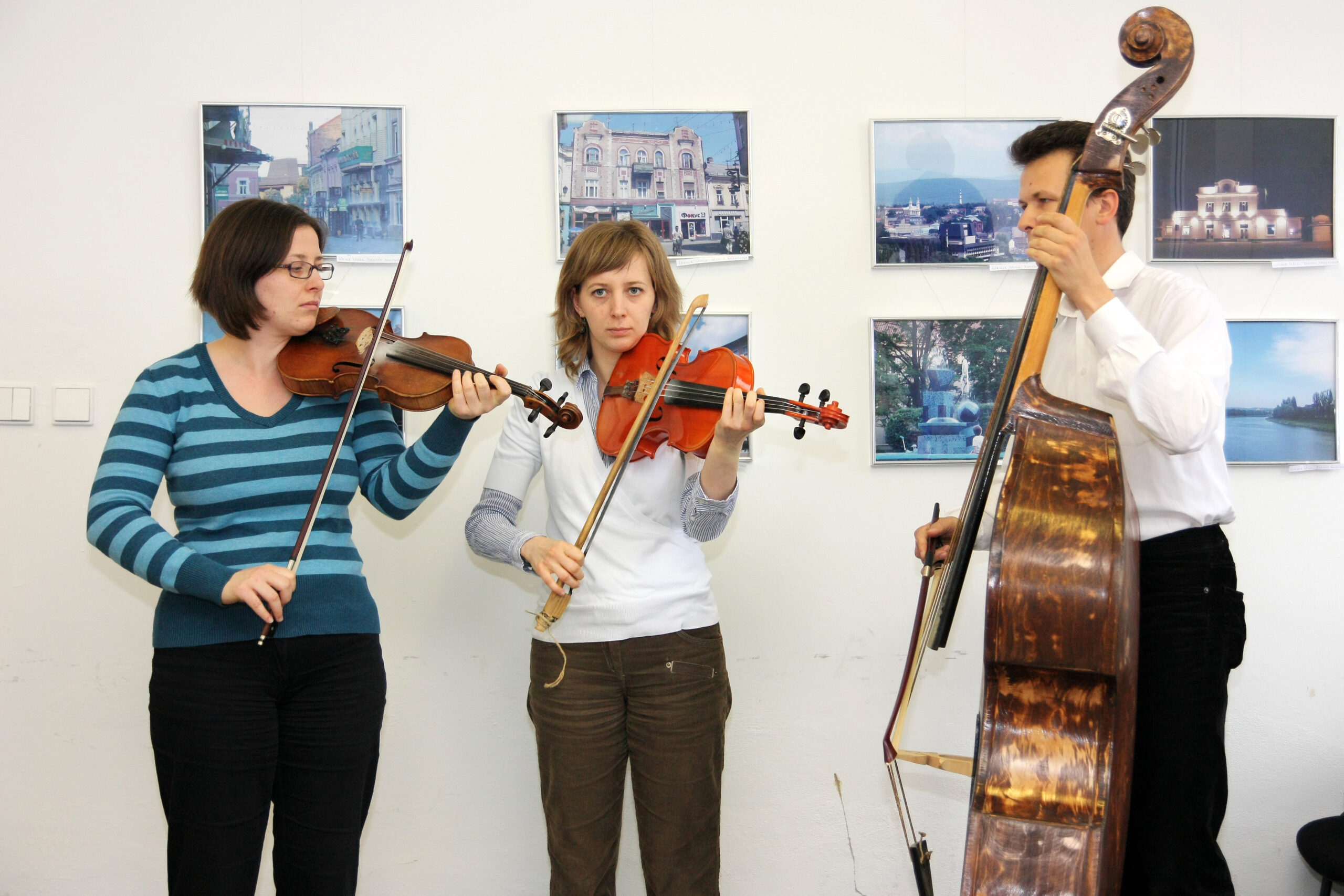 A Gyeplős zenekar muzsikál. Balról: Huszár Ágnes, Huszár Kata és Lelkes LászlóÚj tudás - műveltség mindenkinek program - a határon túli magyar képző- és fotóművészeti kiállítás-sorozat,Létrehozó: Csemadok Művelődési IntézeteRead More