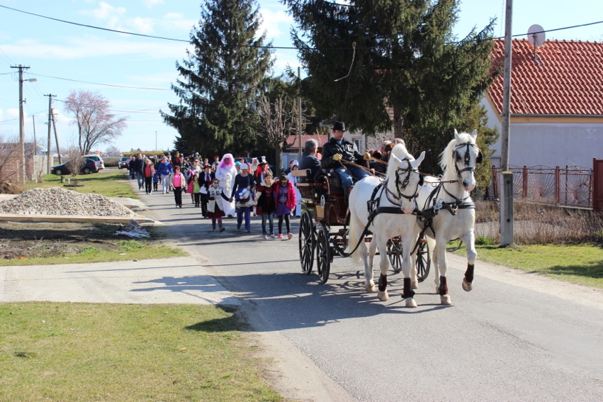 A menet élén lovaskocsi.Létrehozó: Szlovákiai Magyar Művelődési Intézet