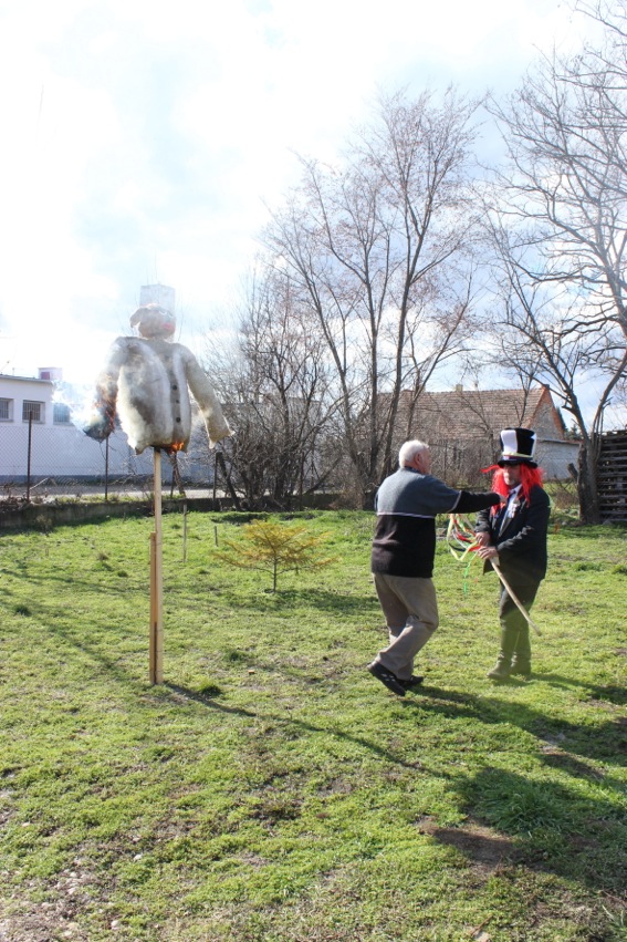 A telet jelképező szalmabábu elégetése.Létrehozó: Szlovákiai Magyar Művelődési Intézet