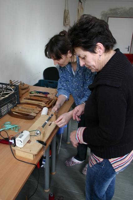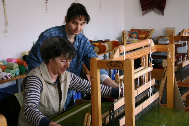 Nagy Mária elõkészíti a fonalat a szövéshez, előtérben Erzsébet áll.Szövõtábor fiataloknak és felnõtteknekLétrehozó: Huszár Ágnes