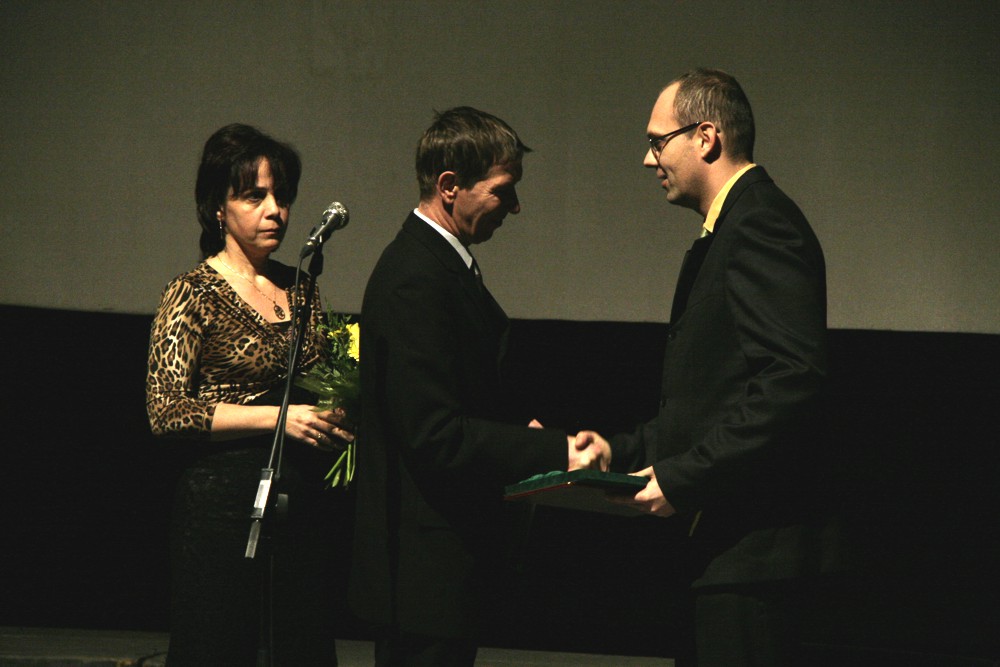 Díjátadás, középütt Mézes Rudolf