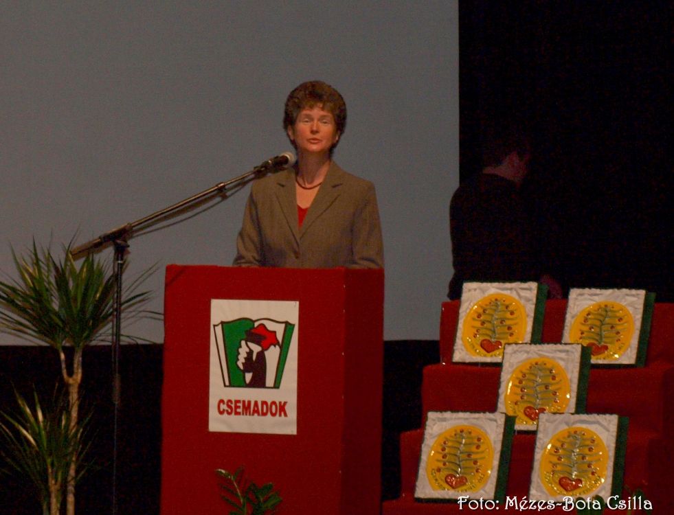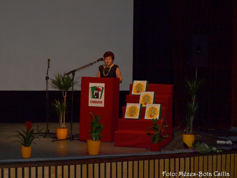 Holop Erzsébet üdvözli a vendégeket a Csemadok nevében