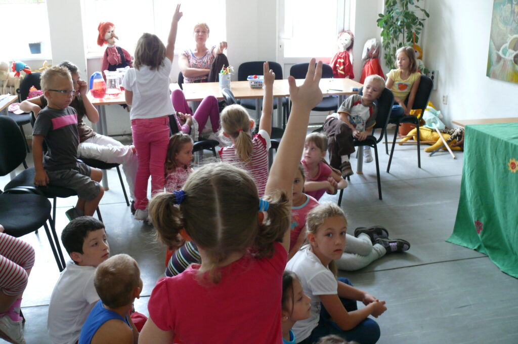 A gyerekek szereplőnek jelentkeznek az interaktív színházhoz.
