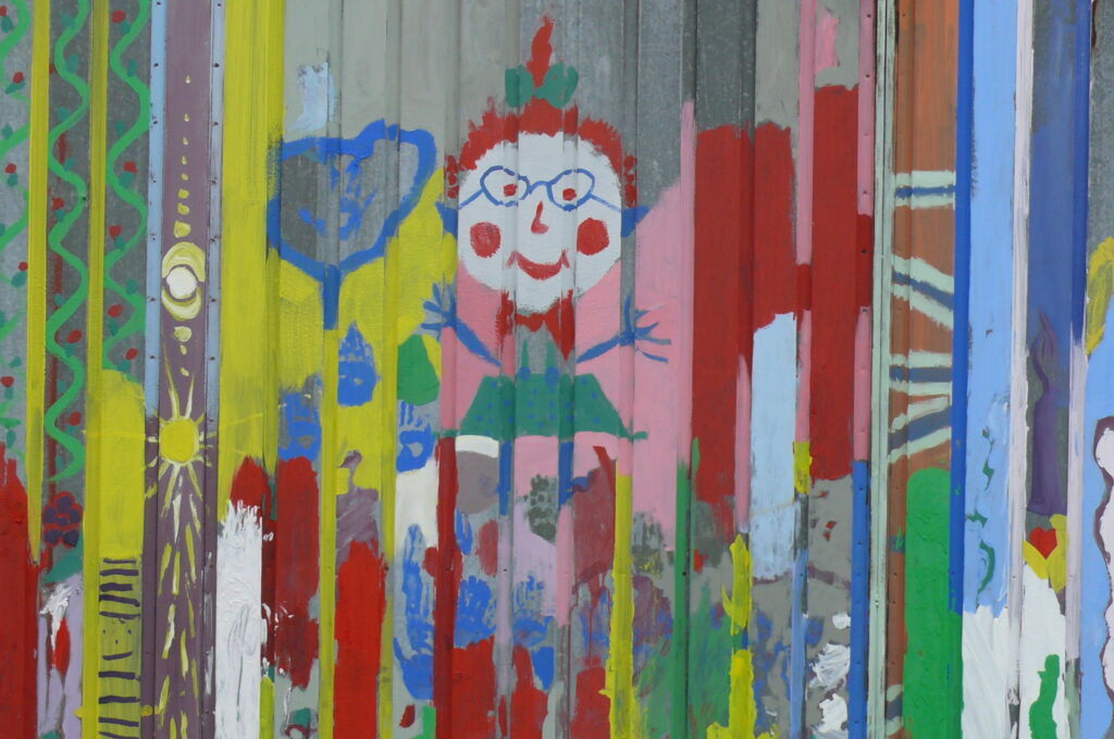 Színes kerítés – a Tavaszi Nagy Rajzolás eredménye a Csemadok Ház udvarán, Dunaszerdahelyen