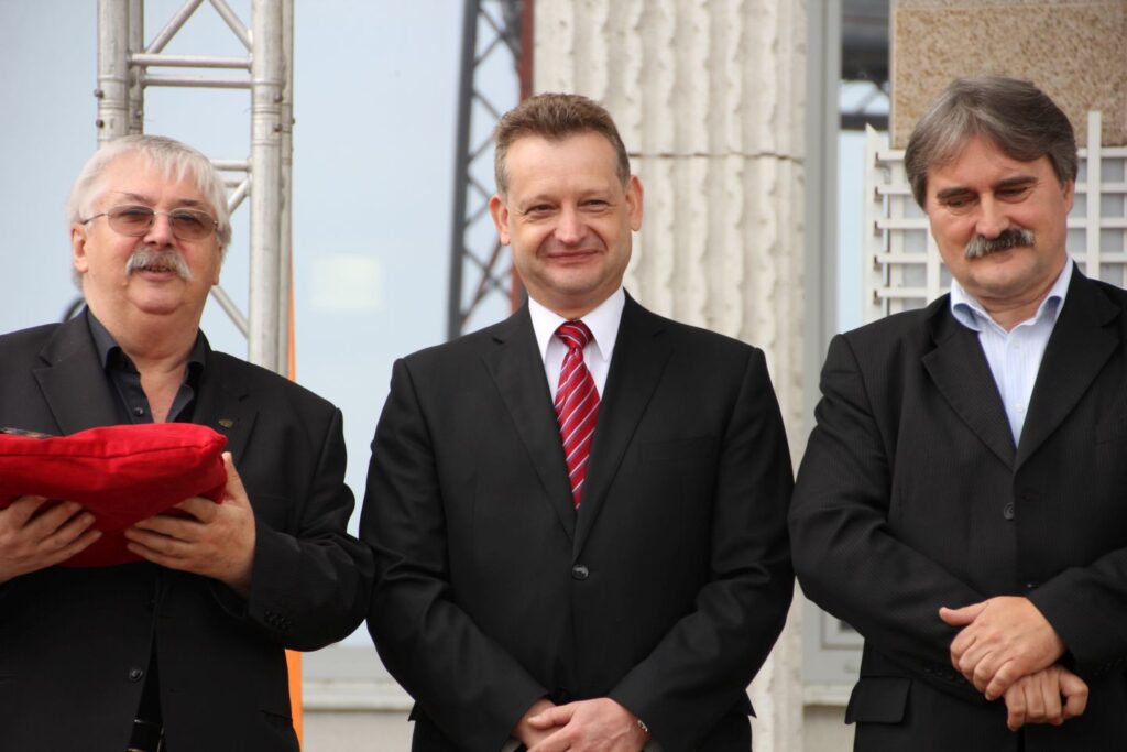 Balról: Huszár László, a Meseváros kormányzója; Hájos Zoltán, Dunaszerdahely polgármestere; Bárdos Gyula, a Csemadok országos elnöke