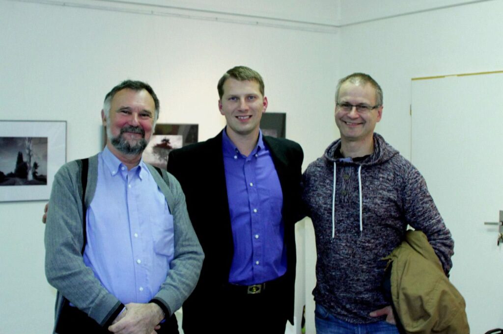 Párhuzamos cím: Balról Krascsenits Dániel, a kiállítás méltatója, mellette Cseh Péter kerámiaművész (Albár)
