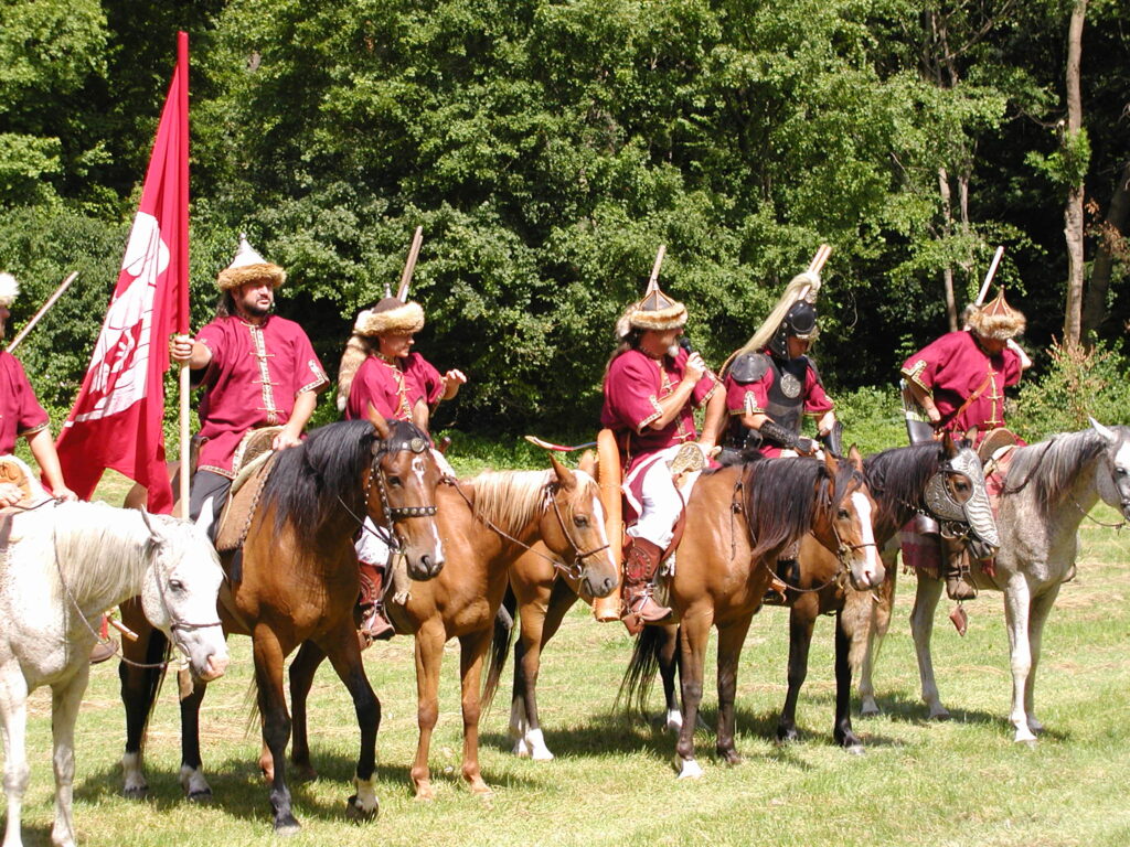 Felsorakoznak a Csallóközi Lovasíjászok.