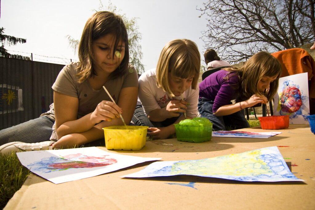 Színes buborékokkal festenek a gyerekek