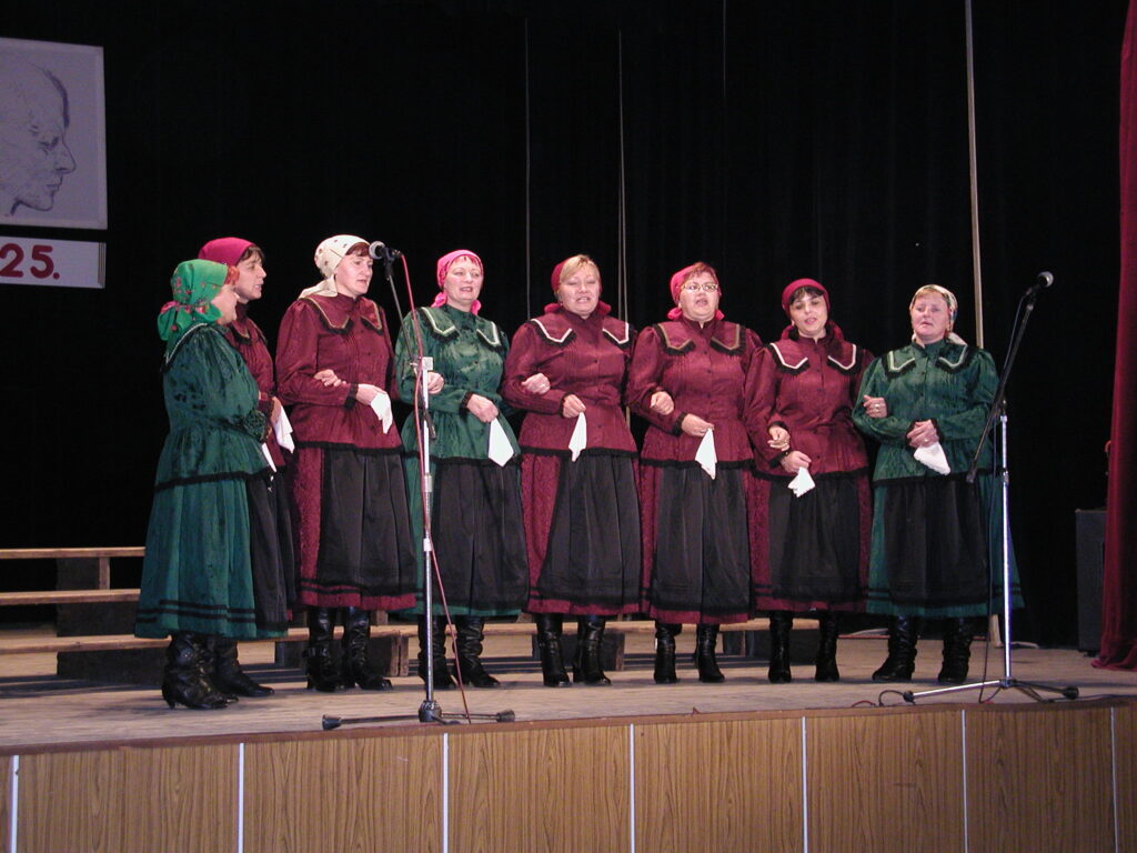 A menyecskék gömöri, medvesalji palóc népdalokat (lakodalmi dalokat) énekelnek.