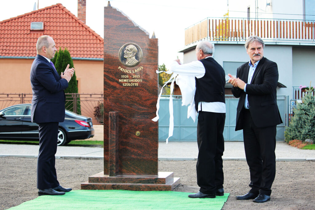 Bukoszky László kisebbségi kormánybiztos, Patócs József és Bárdos Gyula a Csemadok országos elnöke leplezik le a szobrot