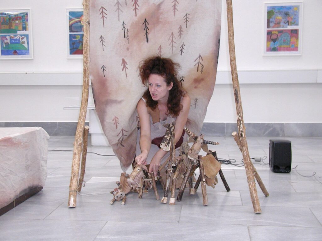 Hogyan szelídültek meg a vadállatok? Kecskés Marika bábműsora a gyermekrajz kiállítás megnyitóján.