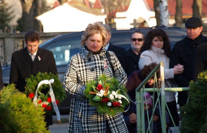 Sókszelőce nevében Kozácek Erika helyez el koszorút