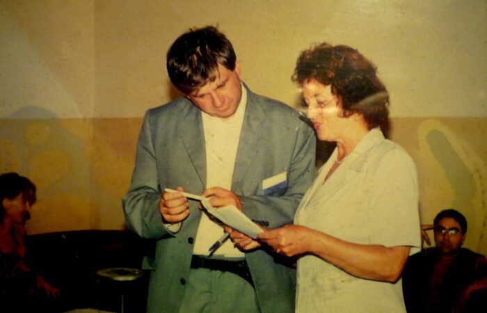 Sebők Valéria, a Csemadok Rimaszombati Területi Választmányának elnöke Juhász Dósa JánossalLétrehozó: Szlovákiai Magyar Művelődési Intézet