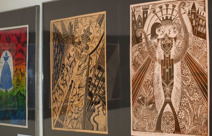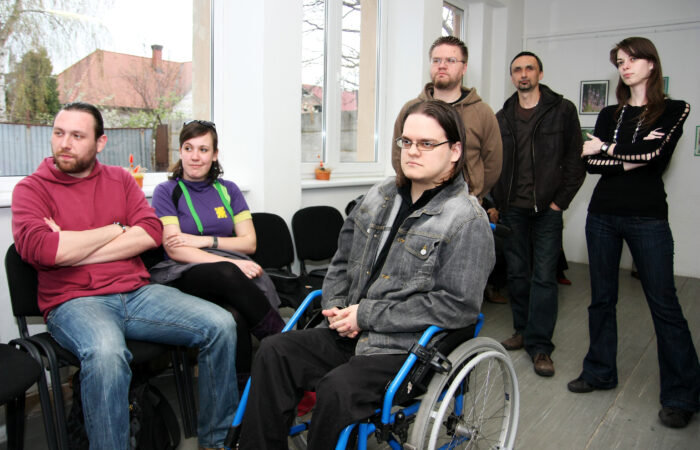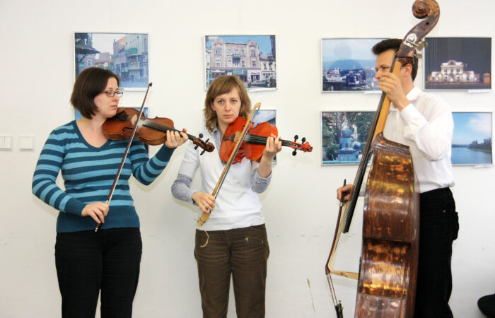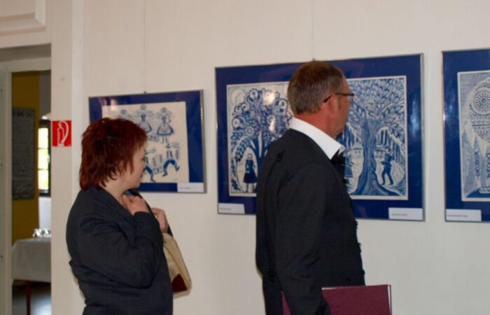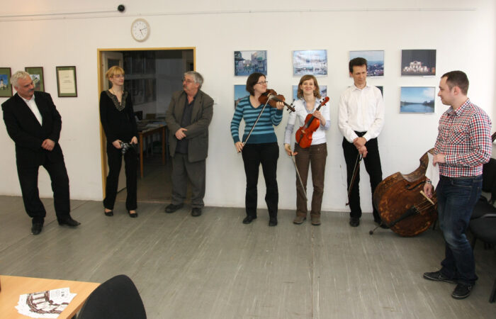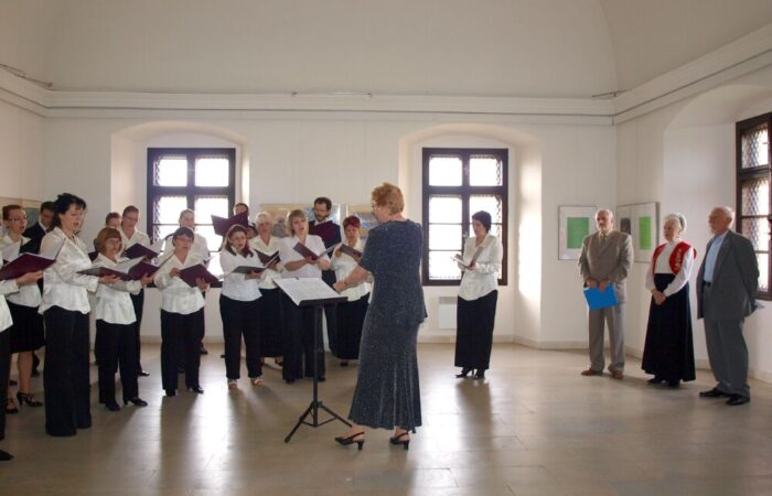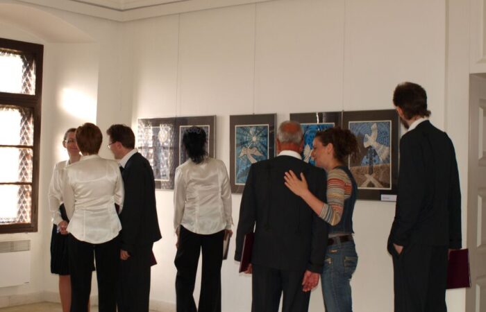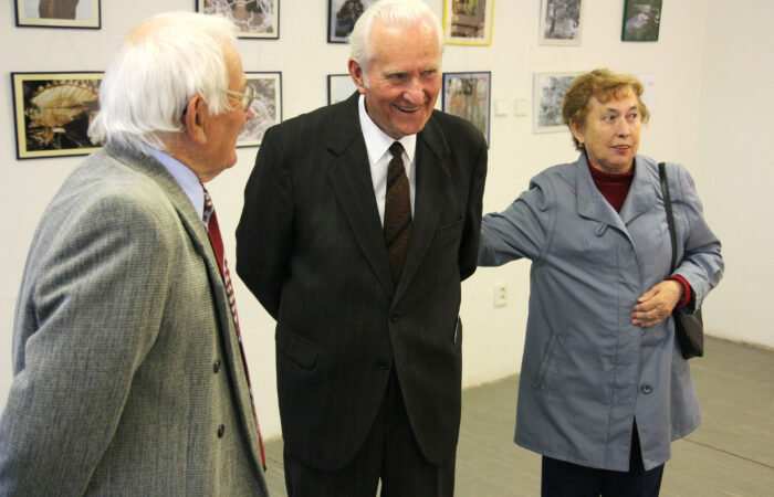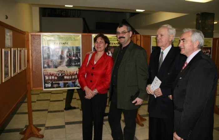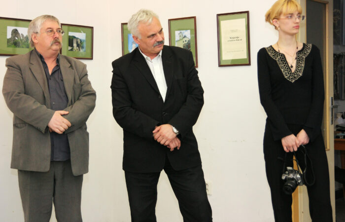 Balról: Huszár László, Dupka György - a KMMI igazgatója és Fuksz Andrea - a KMMi munkatársa, képzőművészÚj tudás - műveltség mindenkinek program - a határon túli magyar képző- és fotóművészeti kiállítás-sorozat,Létrehozó: Csemadok Művelődési Intézete