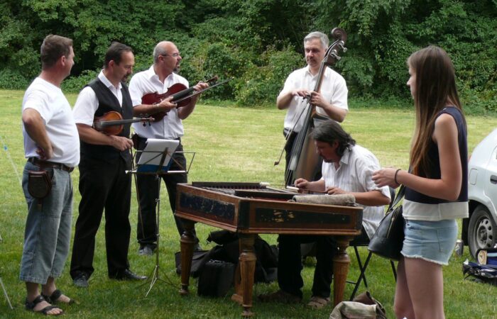 A Csemadok 53. kulturális ünnepélye és szövetkezeti nap BősönEredeti cím: Gyakorol a Pántlika zenekar: (balról) Boráros Pál, Kevicky Péter, Szabó János, Nagy IvánLétrehozó: Szlovákiai Magyar Művelődési Intézet