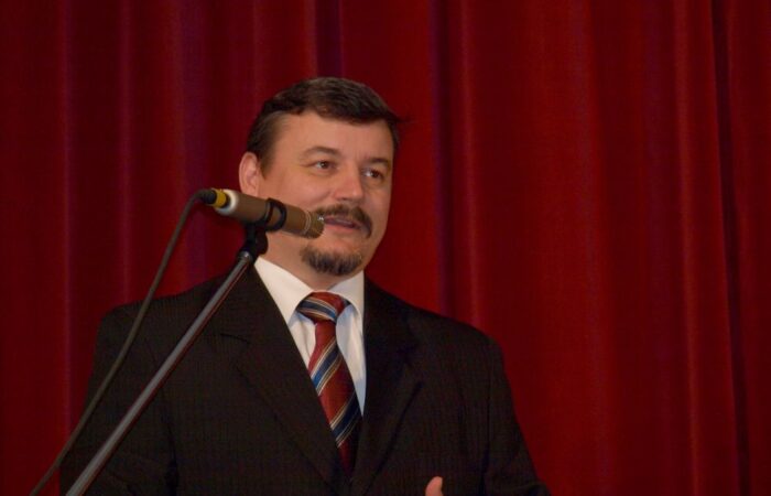Berényi József, a Nagyszombati Kerületi Önkormányzat képviselője megnyitó beszédet mond