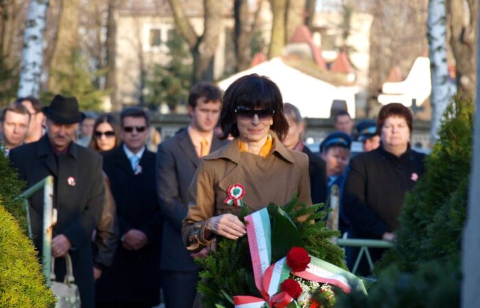 Bíró Ágnes az MKP párt igazgatója helyezi el a koszorút