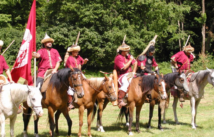Harcban a lovasíjászok.Létrehozó: Csemadok Művelődési Intézete