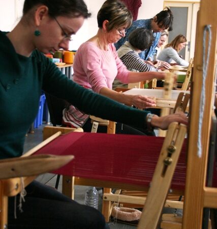 A szövésrõl szóló elõadást nagy figyelemmel követték a tábor résztvevõi (Bruncvik Erika, Erzsébet, Szép Veronika és Nagy Mária).Szövõtábor fiataloknak és felnõtteknekLétrehozó: Huszár Ágnes