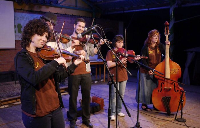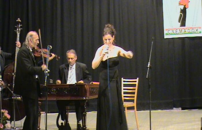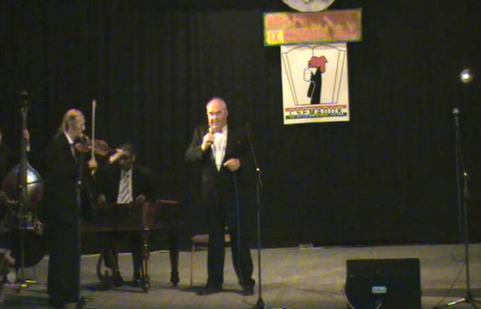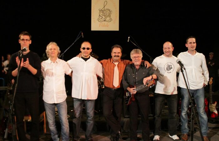 Szörényi Levente , a fesztivál sztárvendége, a MIEZ zenekar és Galcsík Károly programszervezőVerséneklõ Együttesek 7. Országos FesztiváljaLétrehozó: Csemadok Nógrádi Területi Választmánya