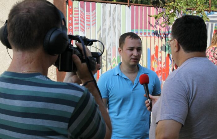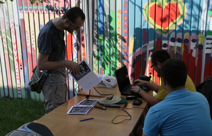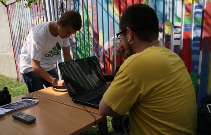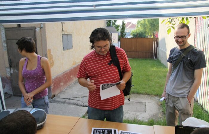 A Fotoklub elnöke, Soós László a DSTV riporterének , Kanovits Györgynek nyilatkozik.II. Fotómaraton DunaszerdahelyenLétrehozó: Csemadok Művelődési Intézete, FotoklubDS