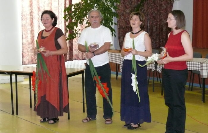 Az oktatók (balról): Juhász Erika, Borsi Ferenc, Bárdosi Ildikó és Huszár Ágnes szakmai szervezőLétrehozó: Csemadok Művelődési Intézete