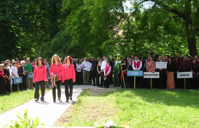 A Csemadok 53. kulturális ünnepélye és szövetkezeti nap BősönEredeti cím: A millecentenáriumi emlékmű koszorúzásaLétrehozó: Szlovákiai Magyar Művelődési Intézet
