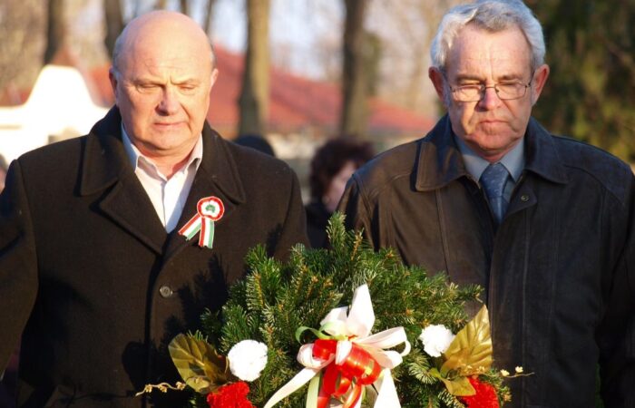 A csemadok vágsellyei városi szervezete nevében helyezik el a kegyelet virágait
