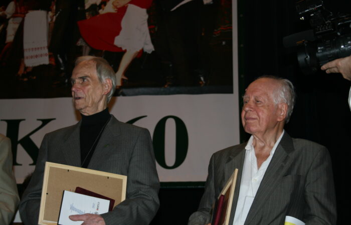 Balról: Nagy József (Pozsonypüspöki) és Cséplő Ferenc (Pozsony)Ünnepi ülésLétrehozó: Csemadok Művelődési Intézete[sz. dig. fotó, Fekvőkép]