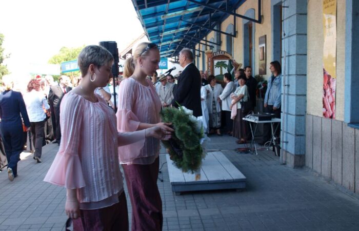 Koszorúzás a galántai vasútállomáson elhelyezett Kodály Zoltán emléktáblánál