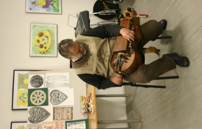 Bálint Károly tekerőlanton játszik.Karácsonyváró a Csemadokkal II.Létrehozó: Csemadok Művelődési Intézete