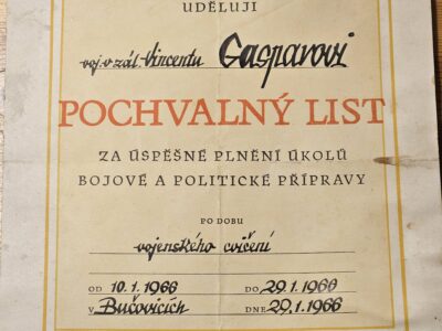 Gáspár Vince – dicsérőlevél 1966