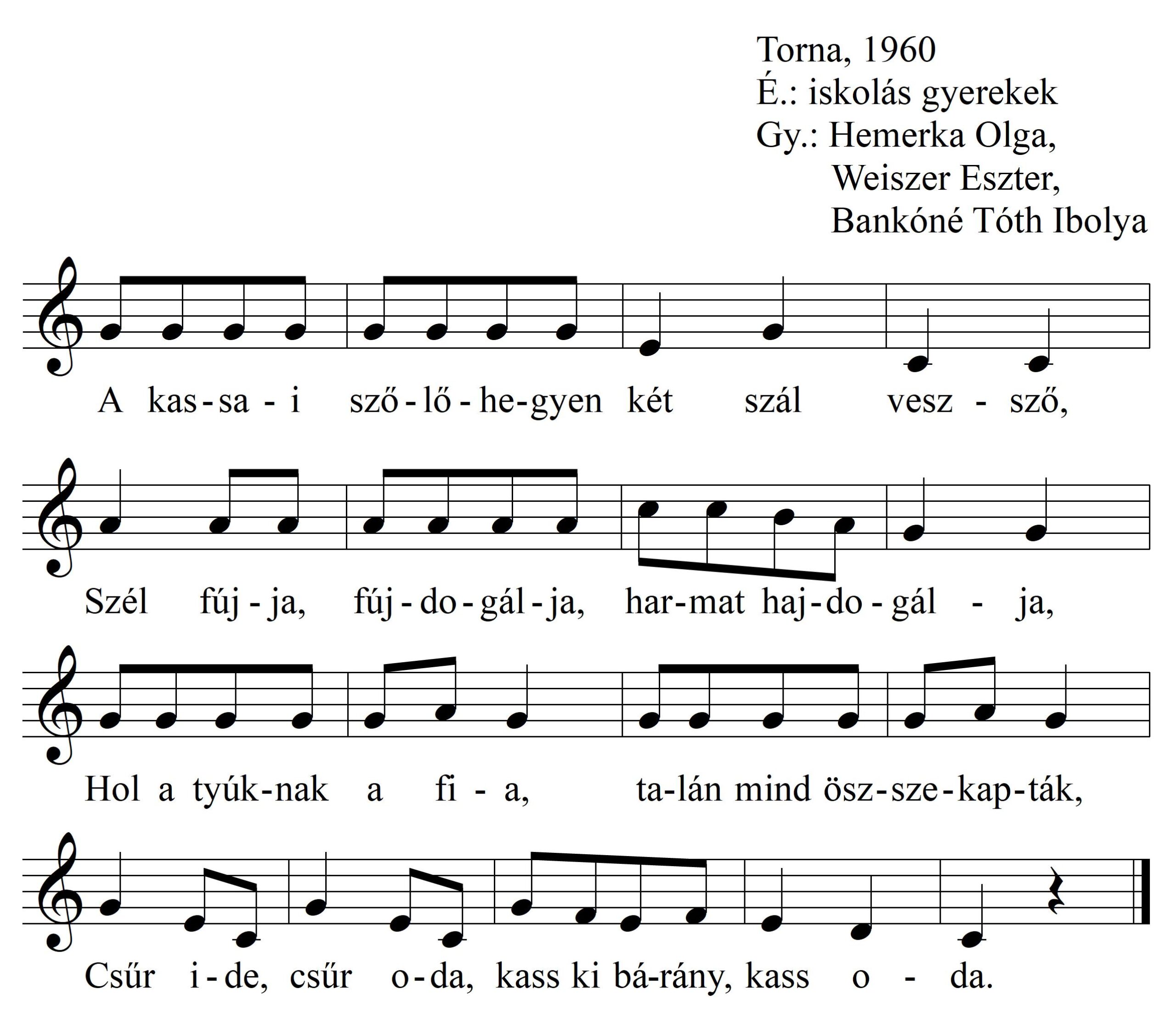 A kassai szőlőhegyen két szál vessző, szél fújja, fújdogálja,