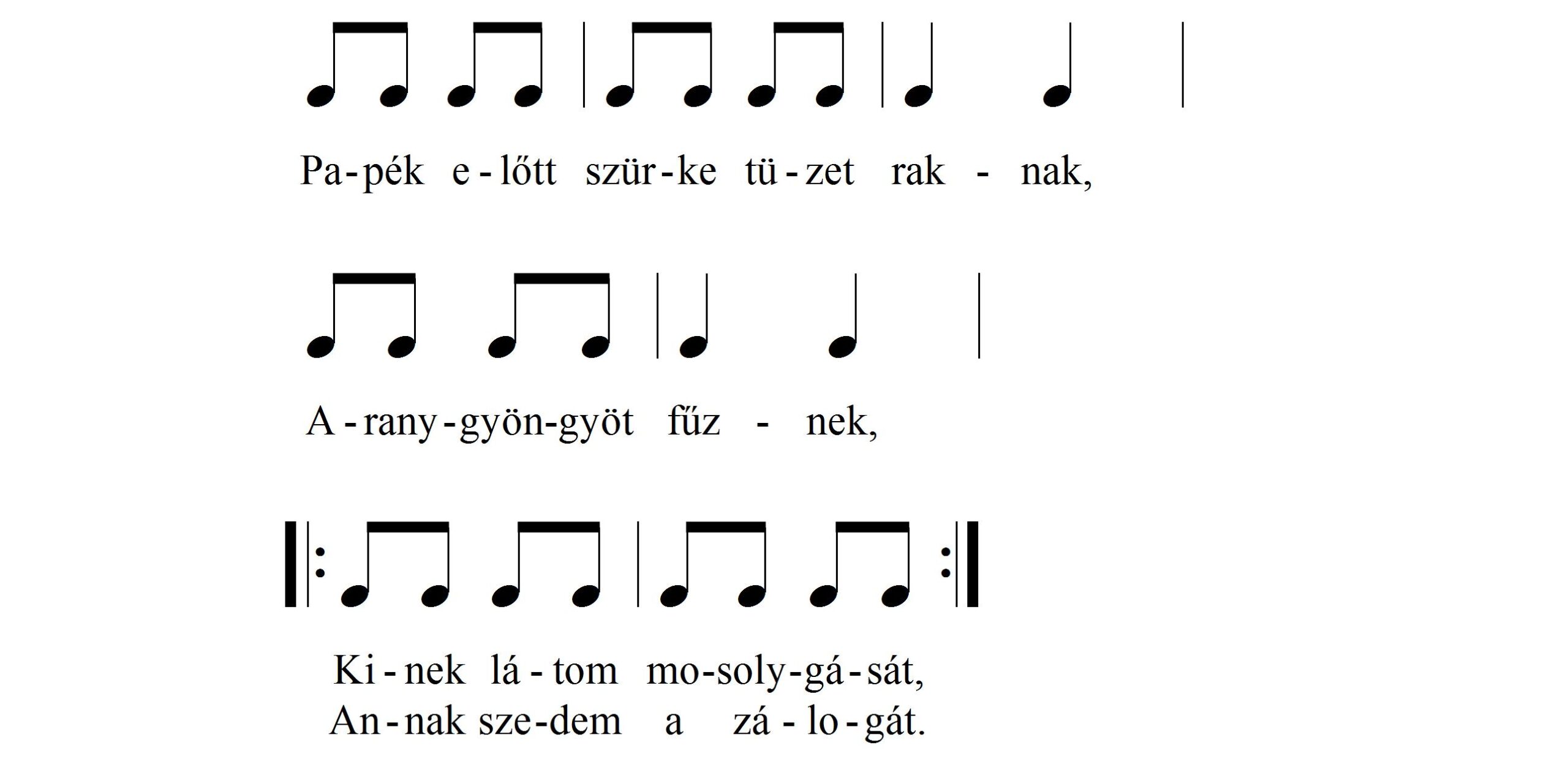A zálogszedő sorban minden játékosnak elmondta az alábbi versikét, közben mutatóujját a játékos szeme előtt ide-oda mozgatta: