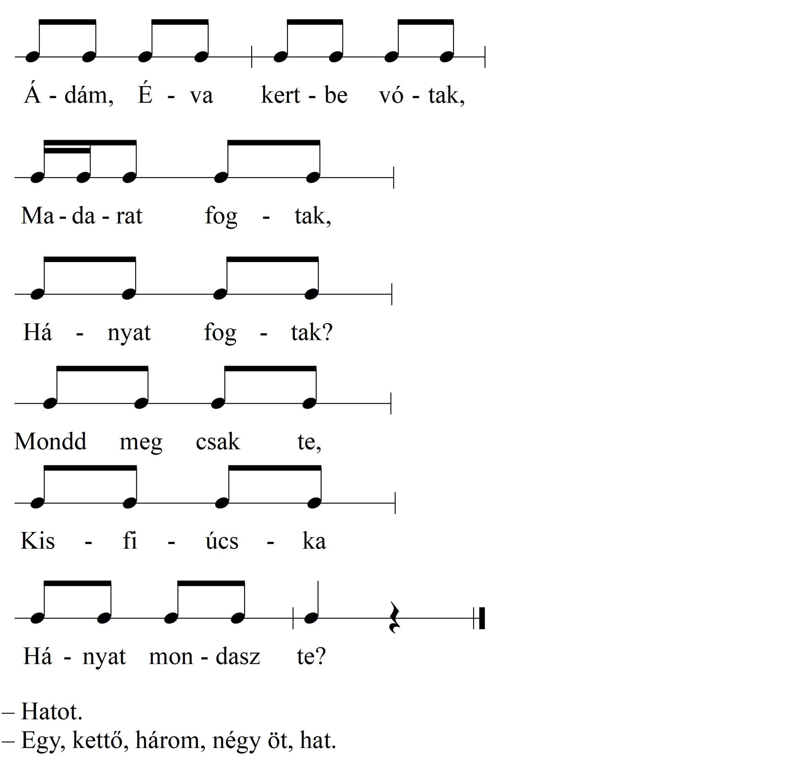 Ezt a kiszámolót úgy számolták ki, hogy az, akire a kiszámoló utolsó szótagja esett, mondott egy számot. Aztán a számoltató azt a számot újra kiszámolta a játékosokon, és a szerep annak jutott, akire az első körben mondott szám esett.