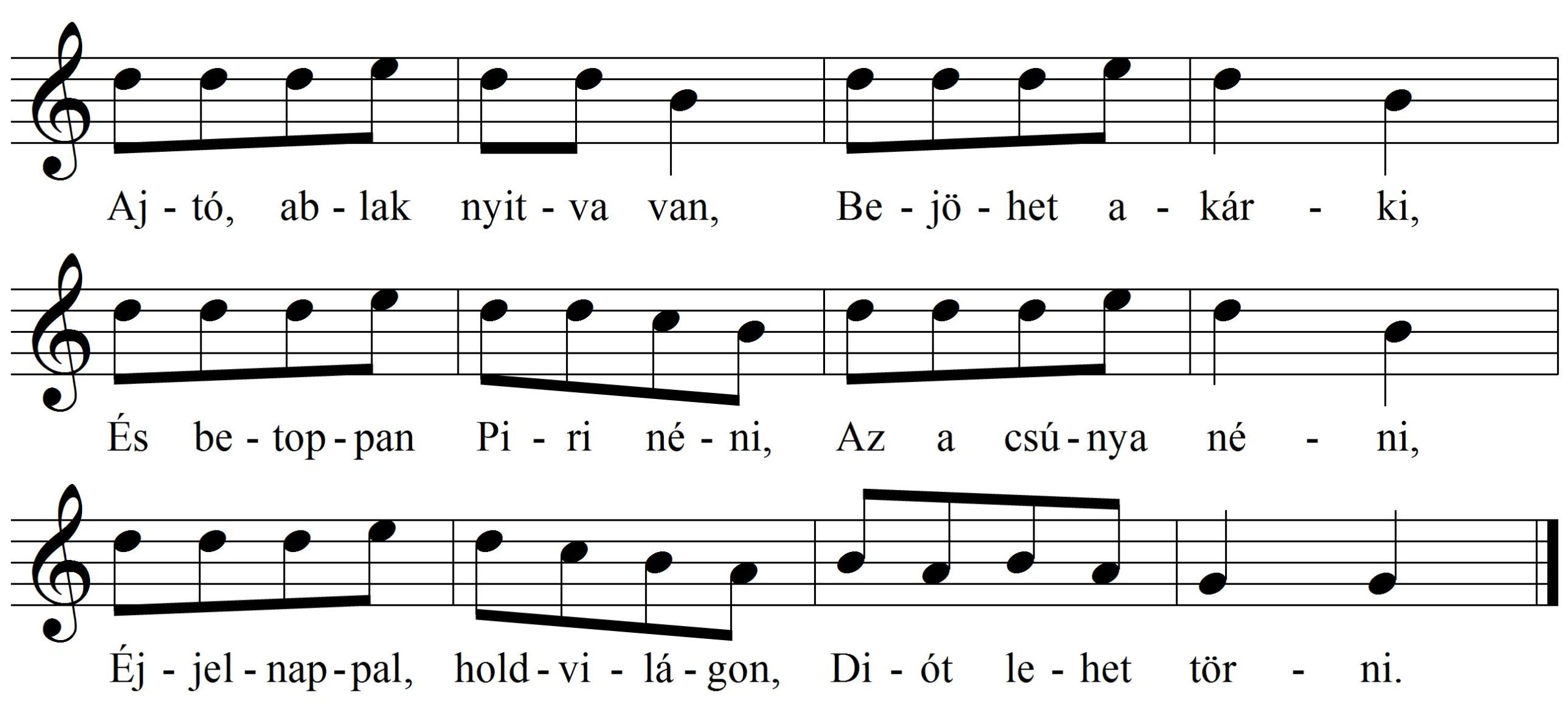rön kívül áll, ő „Piri néni“. A kör forog, közben énekelnek: