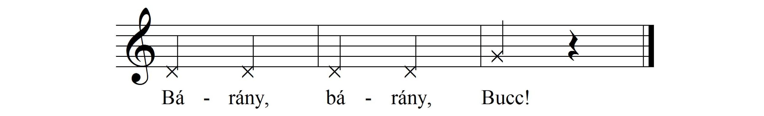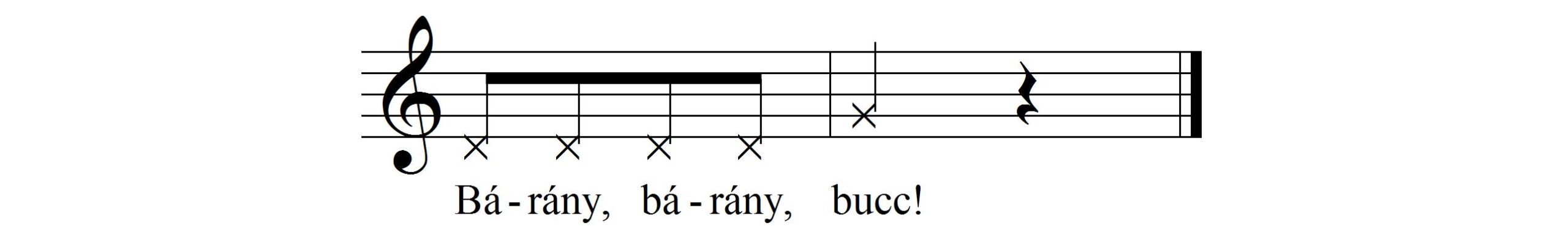 Ha a felnőtt homlokát fejcsóválással közelíti a kisgyermek arcocskája felé, ennek megfelelően a mondóka hangjainak időtartama is megváltozik: